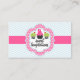© 2013 Socialite Designs. Our elegant bakery business card has three cupcakes, in a whimsical polka-dot banner, a light turquoise blue chevron pattern background and pink ribbon. All design elements can be moved, resized or deleted to suit your bakery business. Just replace our template text with your business information.
