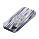 © 2012 Socialite Designs. Our elegant chevron design in navy blue and white iPhone case has a light grey banner for your monogram, initials or name.