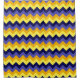 Un rideau de douche avec un design motif, mignon et ombragé de chevrons en bleu, jaune et or.