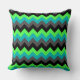 Un oreiller de 20 po x 20 po doté d'un élégant design motif de chevrons multicolores en noir, gris, vert et turquoise.