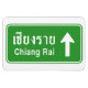 Funny Chiang Rai, Thailand Ahead bilingual Thai highway sign written in Thai and English Language Scripts.