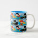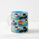 Chibi Flash, Superman, and Batman Racing Pattern Two-Tone Coffee Mug