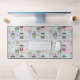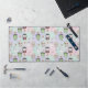 A cute and playful desk mat featuring a whimsical pattern of adorable, cartoonish Halloween monsters like ghosts, mummies, and vampires against a soft pastel background.