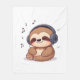 Chibi Sloth with Headphones � Cute Kawaii Relaxing Fleece Blanket