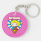 Regardez Chibi Supergirl debout devant un coeur de starburst bleu et blanc, au-dessus de son Bouclier S avec son nom au-dessus.