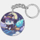 Chibi Witch Cat Flying in Starry Sky – Kawaii Magi Keychain