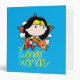 Check out Chibi Wonder Woman flying in the clouds with her lasso, spelling out her name with her rope, against a red star backdrop.