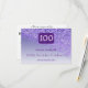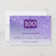 The front card features falling Purple Glitter on a Purple gradient with shiny stars. The gold and Purple glitter Number is unique to announce the celebration of her 100th Birthday.