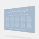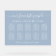 Chic bleu poussière dépoli mariage acrylique assigner jusqu'à 10 tables avec "nos gens préférés" dans un élégant script blanc, vos noms et date de mariage unis par un coeur et "Nous sommes si heureux que vous êtes ici" dans une simple typographie blanche moderne.
