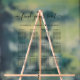 Sac à table en acrylique clair et chic pour mariage, inscrivez-vous jusqu'à 12 tables avec "trouvez votre siège" dans un script élégant avec des swashes, "Nous sommes si heureux que vous soyez ici", et vos noms et mariages date réunis par un coeur.
