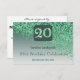 The front card features falling Green Glitter on a Green gradient with shiny stars. The gold and Green glitter Number is unique to announce the celebration of her 20th Birthday.