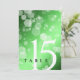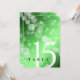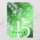 Add sophistication to 20th, 38th, or 55th emerald wedding anniversary celebrations with this table card, which features elegant lettering and hexagonal confetti on an emerald green background. Customize with table number. Reverse shows identical design.