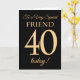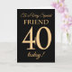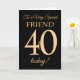 Chic 40th Gold-effect on Black, Friend Birthday Card