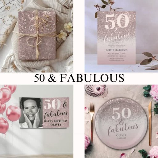 Chic 50 & Fabulous Rose Gold Glitter Birthday Designed by Lara Bjornson
