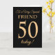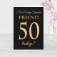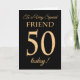 Chic 50th Gold-effect on Black, Friend Birthday Card