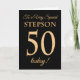 Chic 50th Gold-effect on Black, Stepson Birthday Card