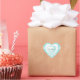 Elegant heart shaped wedding envelope seal sticker done in aqua blue and white damask. A stylish white heart, in the middle, has dark grey script text reading Our Wedding. Change the text to read anything you want, for a lovely finishing touch to your wedding invitation envelopes.