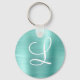 This chic keychain features a large white script monogram on a background of aqua brushed metallic texture. A unique girly gift for birthday, holidays and any special occasion. Designed just for you by Extreme Tees!
