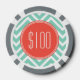 Chic Aqua Green Chevron and Orange Custom Monogram Poker Chips
