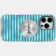 Chic Aqua Silver Stripes Monogram Case-Mate iPhone Case