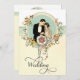 Elegant Art Deco vintage wedding invitations with a romantic antique art illustration of a beautiful Edwardian era flapper bride and handsome groom from the 1920's 1930's surrounded by a pretty, colourful circular border of flowers with ornate swirls and curls. The bride is wearing a classic traditional white wedding gown with a long flowing veil and lovely bouquet of pink and blue flowers. The main colours of the invitation are cream, teal / turquoise blue, pink and white. The pretty, swirly, curly, swash, cursive, fancy, sophisticated, ornate "wedding" text on the front is fixed. These cute, retro, colourful, whimsical, old fashioned, trendy, fashionable, chic, glamourous, classy, original and unique vintage invites for weddings are printed / decorated on both sides / have double sided printing. All of the text can be easily customized to meet your needs and you can change the font style, colour and size of font if you desire. If you need any assistance customizing your product please contact me through my store and I will be happy to help. PLEASE NOTE: All products on Zazzle have flat printed images.