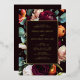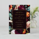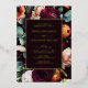 This elegant autumn wedding engagement party invitation features real gold foil calligraphy script and a gold foil frame with a floral border of burgundy, orange and blush pink roses with eucalyptus. Congrats on your upcoming wedding! Designed by Susan Coffey.