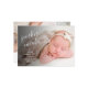 Elegantly sweet birth announcements feature your favourite newborn photo in full bleed, with baby's name in slanted white script, birth stats in chic white lettering and parent's names on the back with 3 more photos. **TIP: Size your square photos on the back before you upload them for best placement. More styles in our store.