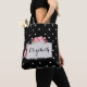 Add your name to this pretty black trinket tray with white polka dots. Lovely details include a frame surrounding your custom text with pink roses and ballet slippers