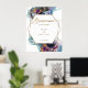 Elegant Wedding welcome sign in French with exquisite watercolor stains in cosmic galaxy hues with dainty stars cascading behind a golden geometrical hexagon featuring a welcome message with couple names. Ability to change the text to suit other events. Watercolor stains in a blend of blue, navy, teal, turquoise, purple, fuchsia, and golden hues. Modern handwritten calligraphy details. Available in many size options. "IMPORTANT NOTE: This sign is in premium poster paper style, easy to frame or glue/staple to inexpensive MDF or foam board for display. If you prefer this sign prepared for display already on a foam board, please follow these easy steps: on this sign product page, scroll up, until you see a section with images called "Transfer design to a product". Use the arrow on the images to look at all the options, until you reach the "Foam Boards" option. Click on it, and it will transfer the design into a foam board for you. Initially, sometimes it transfers the design into a very big foam board size, nevertheless, you can change the sign into the size you need right there on the product page and even see how it looks already in a stand. When you add this design to your shopping cart, it will tell you the back side is in black. Don't worry about it, as this only means that the back of the sign will be white. If you need help, please send me a message and I'll get back to you as soon as possible".Part of our "Mystic Garden Celestial" collection with a variety of coordinating products available. Dimensions of sign in demo photo with stand: 18" x 24"