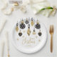 Chic Black and Gold Christmas Ornaments Paper Plate