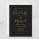 Chic Black And Gold Signature Script Photo Wedding Invitation