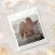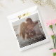 Modern wedding favour bags featuring a simple yet elegant design with your two initial monogram in a contemporary script font along with your names and wedding date surrounded by a border, over your favourite photo.