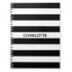 Chic black and white stripes custom name monogram notebook