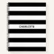 Chic black and white stripes custom name monogram notebook