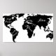 Chic black and white modern typography script font world map with continents hipster globe print poster.