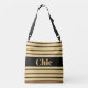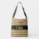Chic Black Belt on Golden Striped Crossbody Bag