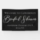 This elegant black bridal shower party banner features beautiful white typography for an evening party in the winter. Minimalist script is a modern trend for a contemporary bride.