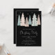 Make your holiday celebration unforgettable with this stylish Christmas party invitation, featuring a modern black background adorned with whimsical pastel Christmas trees. The elegant contrast between soft festive colours and bold dark tones creates a sophisticated yet playful look, perfect for family gatherings, office parties, or holiday dinners. Easily personalize with your event details to create the perfect custom holiday invitation.