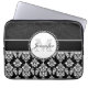 Chic Black Glitter White Damask Monogram Name Laptop Sleeve