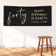 Chic black 40th birthday party banner and welcome sign with "forty" showcased in a stylish gold script and your name and the date in modern gold lettering.