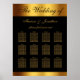 This elegant black and gold seating chart features faux gold calligraphy with the bride and groom's names guest names to personalize with a faux gold border on black background. Fits up to 12 tables. Designed by Susan Coffey.