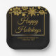 Chic Black Gold Snowflake Custom Christmas Party Paper Plate