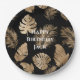 Chic Black Gold Tropical Leaves Paper Plate