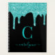 Chic Black and Aqua Turquoise Parties scintillant Dripping Luxury Full Ssize Planner avec votre nom et monogramme sur notre parties scintillant fausse turquoise branchée goutte sur un élégant arrière - plan noir. Conçu par Cèdre et String. Si vous avez besoin d'aide ou d'articles correspondants, veuillez nous contacter à cedarandstring@gmail.com