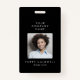 This chic black photo QR code small business ID badge makes the perfect employee ID name tag! The simple dark design features classic minimalist black and white typography with a stylish sophisticated feel. Customizable in any colour. Personalize with your company name, an employee photo, name, title or department, QR code, employee ID number and more!