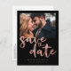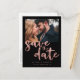 Chic Black Rose Gold Foil Script Save the Date Announcement Postcard