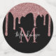 Girly Chic Black Rose Gold Glitter Drips Monogram Birthday Table Confetti with your photo, monogram, and name on our trendy faux blush pink/rose gold glitter drips on a chic black background. Please contact us at cedarandstring@gmail.com if you need assistance with the design or matching products.