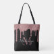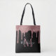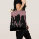Chic Black and Rose Gold Glitter Drips Monogram Tote Bag with fashion faux blush pink/rose gold glitter drips on a chic black background with your custom monogram and name. Designed by Cedar and String. To personalize further, please click the "customize further" link and use the design tool to modify the design. If you need assistance or matching items, please contact us at cedarandstring@gmail.com