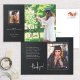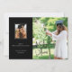 This graduation announcement features a stylish black background with a large photo and a smaller photograph. Details include the graduate's degree, major, school name, and graduating year with the graduate's name highlighted in a "signature" style handwritten font. The back includes an additional photo and a place for a longer message, perfect for including a note of gratitude or the highlighting the graduate's achievements and future plans.