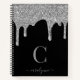 Chic Black Silver Sparkle Glitter Drips Monogram Notebook